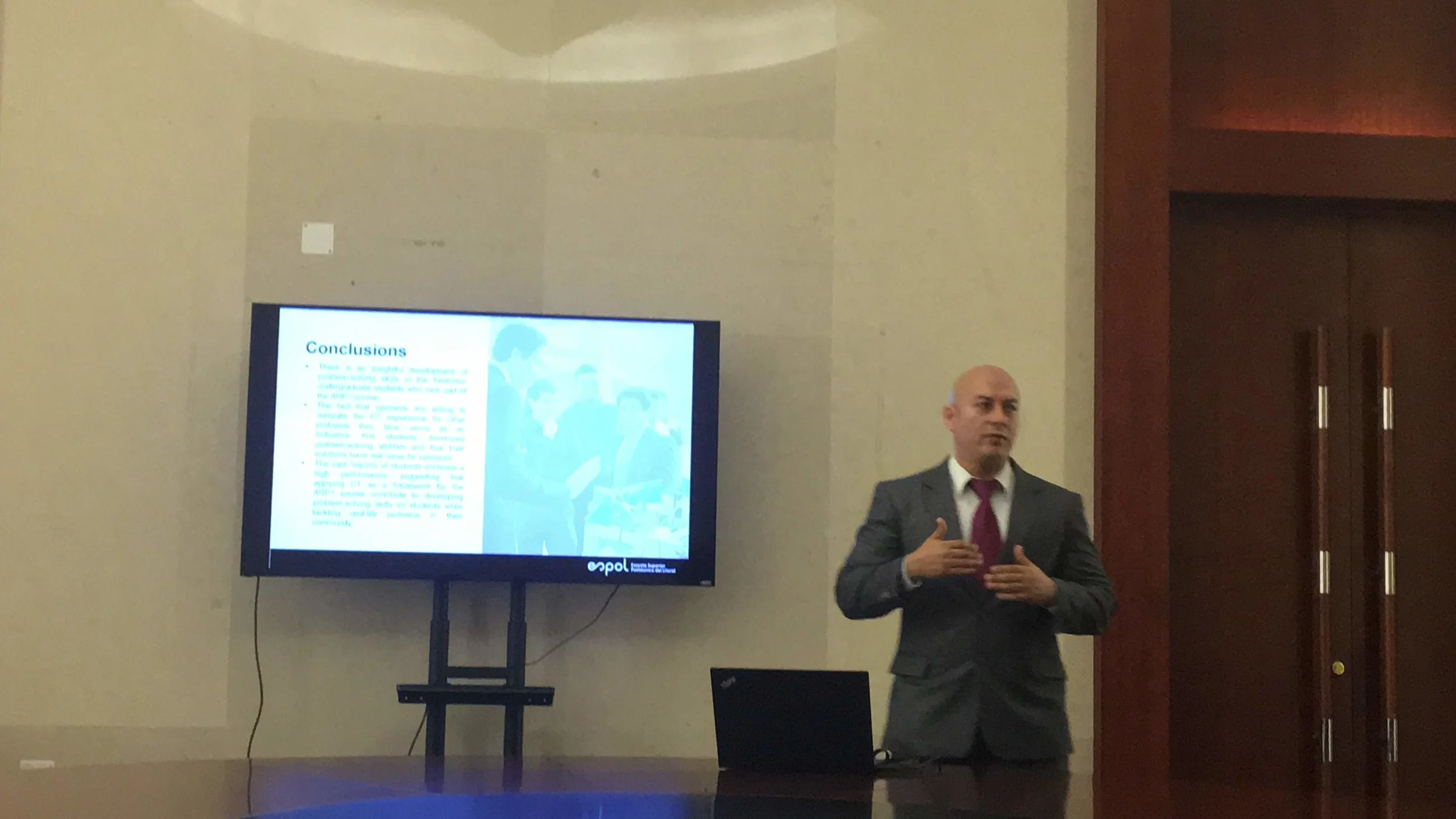 Ph.D. Clotario Tapia, Docente del I3LAB y de la Facultad de Ingeniería Mecánita y Ciencias de la Producción (FCMP), presentó la publicación “Design Thinking: a problem-solving approach for first- year undergrad students”, investigación que muestra los resultados de la encuesta de satisfacción realizada a los Representantes de las diferentes organizaciones que participan en el desarrollo de los proyectos de la materia Análisisi y Resolución de Problemas. El artículo contó con la colaboración de Isabel Alcivar, Docente FCMP, Daniel Contreras y Sharon Guamán, Docentes del I3LAB y Guido Caicedo, Director del I3LAB.