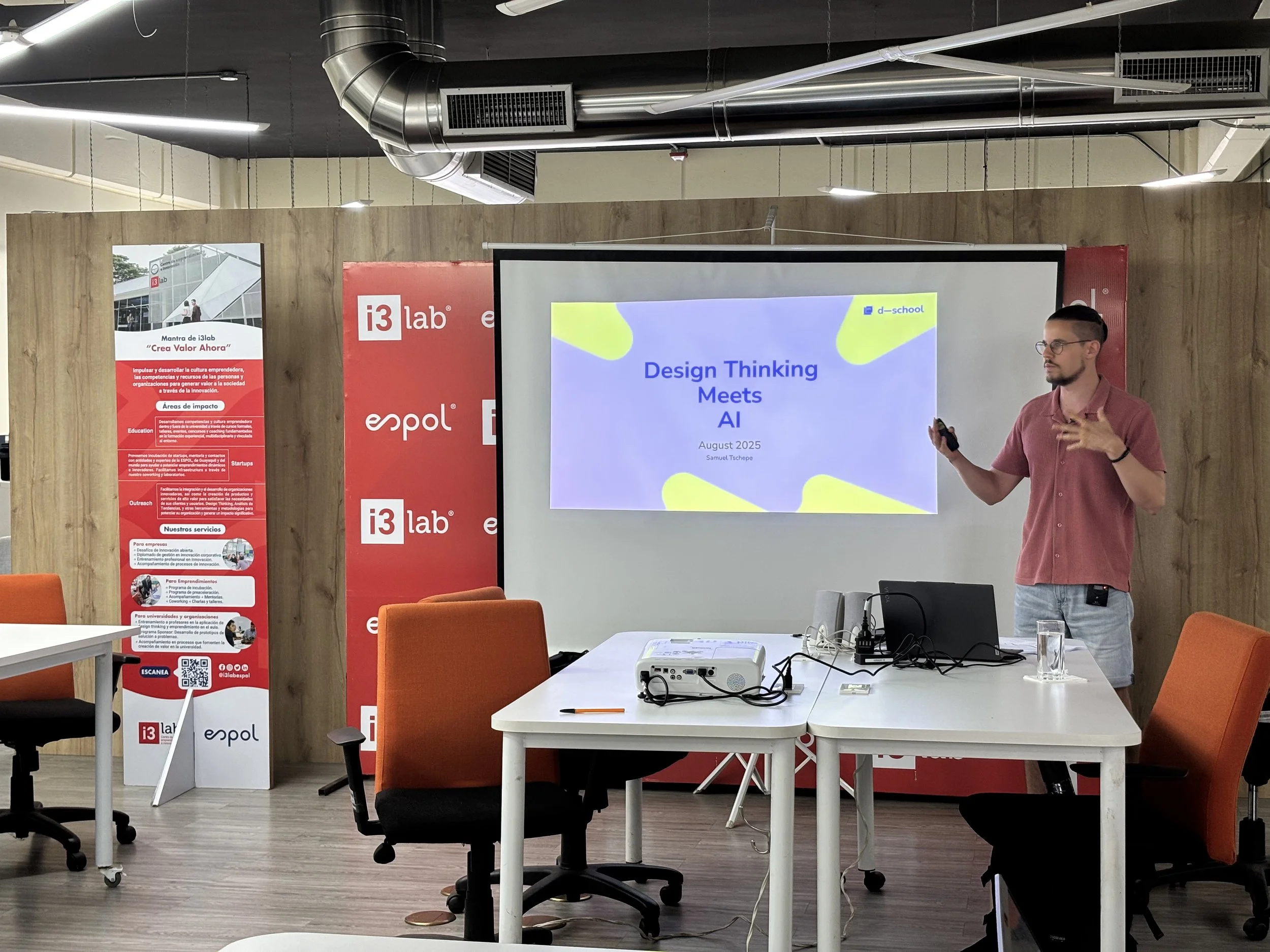 La Escuela Superior Politécnica del Litoral (ESPOL), a través de su Centro de Emprendimiento e Innovación i3lab, organizó un workshop dirigido a docentes de distintas facultades para explorar el vínculo entre inteligencia artificial (IA) y Design Thinking. La jornada estuvo a cargo de Samuel Tschepe, líder de programas de Design Thinking en HPI D-School (Alemania) y experto en metodologías de co-creación y educación.