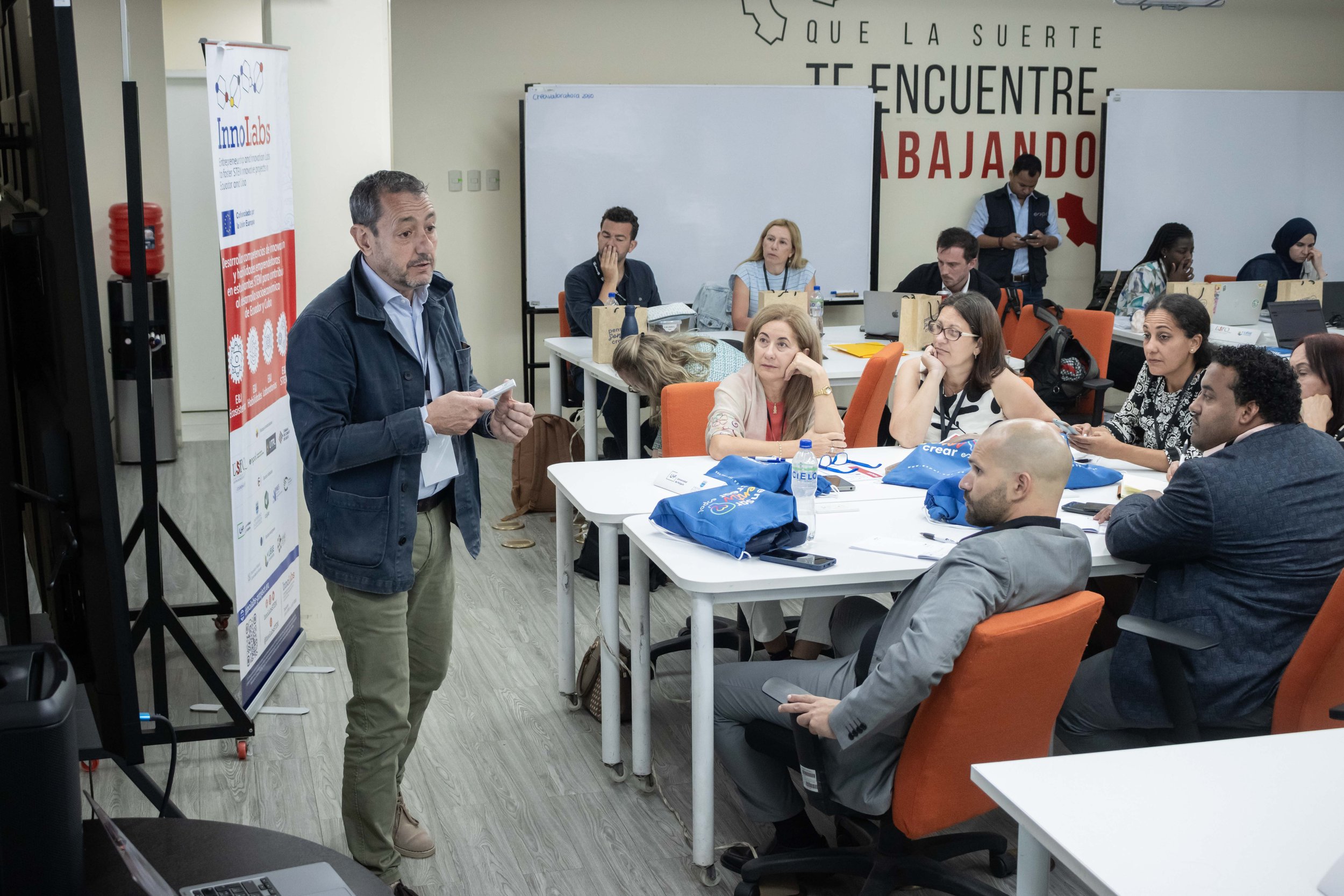 La Escuela Superior Politécnica del Litoral (ESPOL), en Guayaquil, acogió el cuarto Training of Trainers (ToT4) del proyecto internacional InnoLabs – Entrepreneurship and Innovation Labs to Foster STEM Innovative Projects, una iniciativa cofinanciada por la Unión Europea que reúne a universidades y organizaciones de Ecuador, Cuba y Europa para fortalecer los ecosistemas universitarios de innovación y emprendimiento. Este entrenamiento reunió a docentes, investigadores y gestores de innovación de las universidades socias con el objetivo de fortalecer sus capacidades para acompañar proyectos emprendedores y aplicar metodologías de innovación en los futuros Laboratorios InnoLabs que se implementarán en cada institución participante.